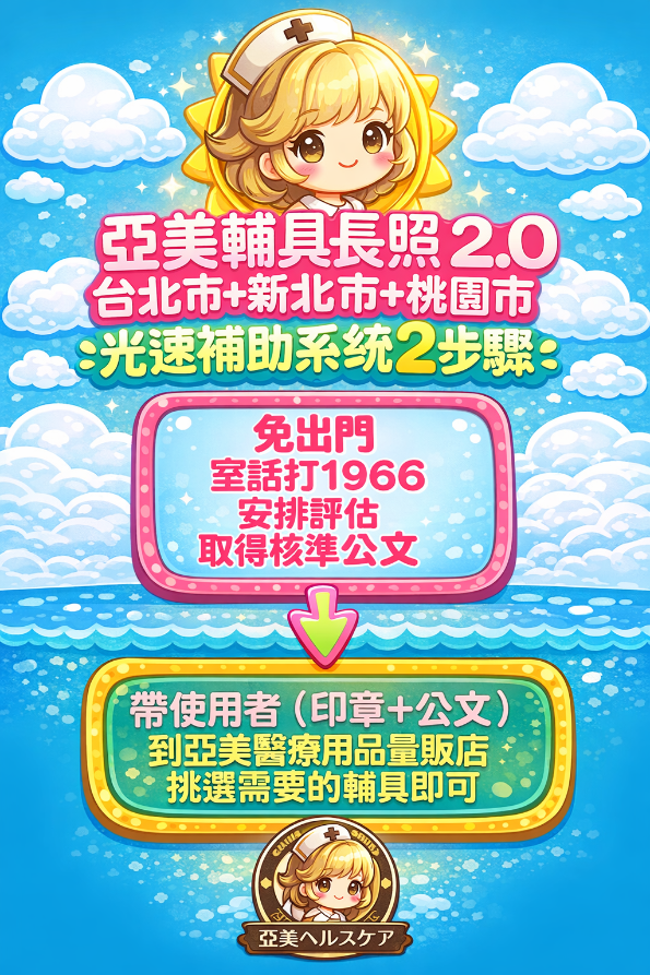 長照2.0輔具補助為政府提供居家失能者申請醫療輔具費用補助制度,減輕家庭照護經濟負擔。